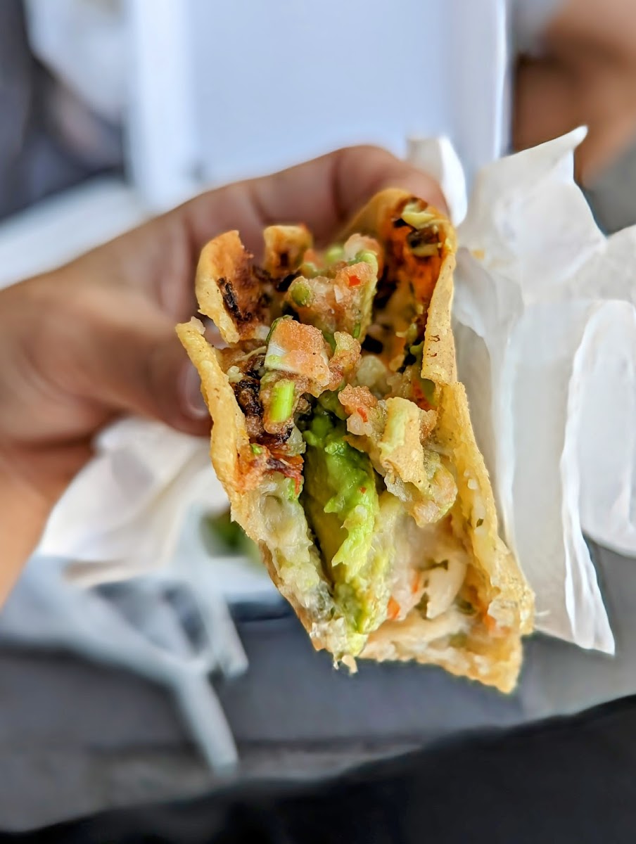 Ive simply been thinking about these since I ate them. Rent free. I didn't even know what to expect because what even is a crispy shrimp taco with tomato sauce but man oh man she was SO good. Get some to take home and reheat in the air fryer to keep the crispy nature. The flavor is so hard to explain but the hype is real i promise.